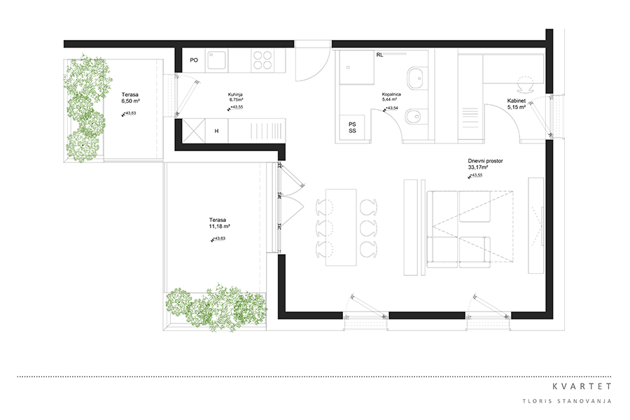 Slogan ‘Mestno življenje s pridihom narave’ narekuje zelen koncept arhitekture, ki s prostornimi terasami in ložami tudi v bivalnih prostorih povezuje ljudi z naravo. Krajinsko arhitekturna zasnova pa stolpiče umesti med zelenje in krošnje dreves, kjer se razprostirajo igralne in rekreacijske površine ter prostori za oddih.