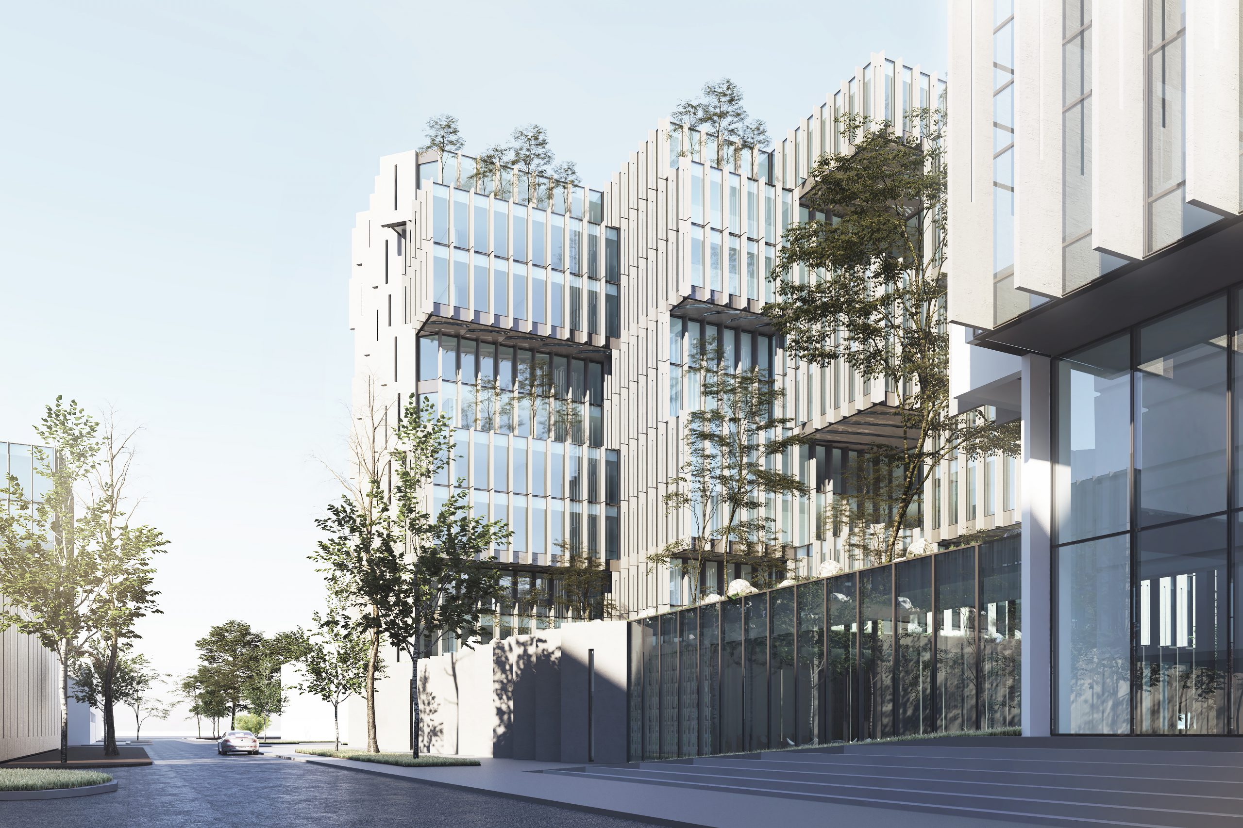 Zelenje je na različne načine integrirano po posameznih etažah ter ustvarja prijetno mikroklimo in orientacijo na poglede proti Ljubljani in Alpam. Čeprav 3 stavbe navzven predstavljajo poenoteno oblikovno podobo, lahko vsaka zase deluje neodvisno in se jo upravlja povsem ločeno.