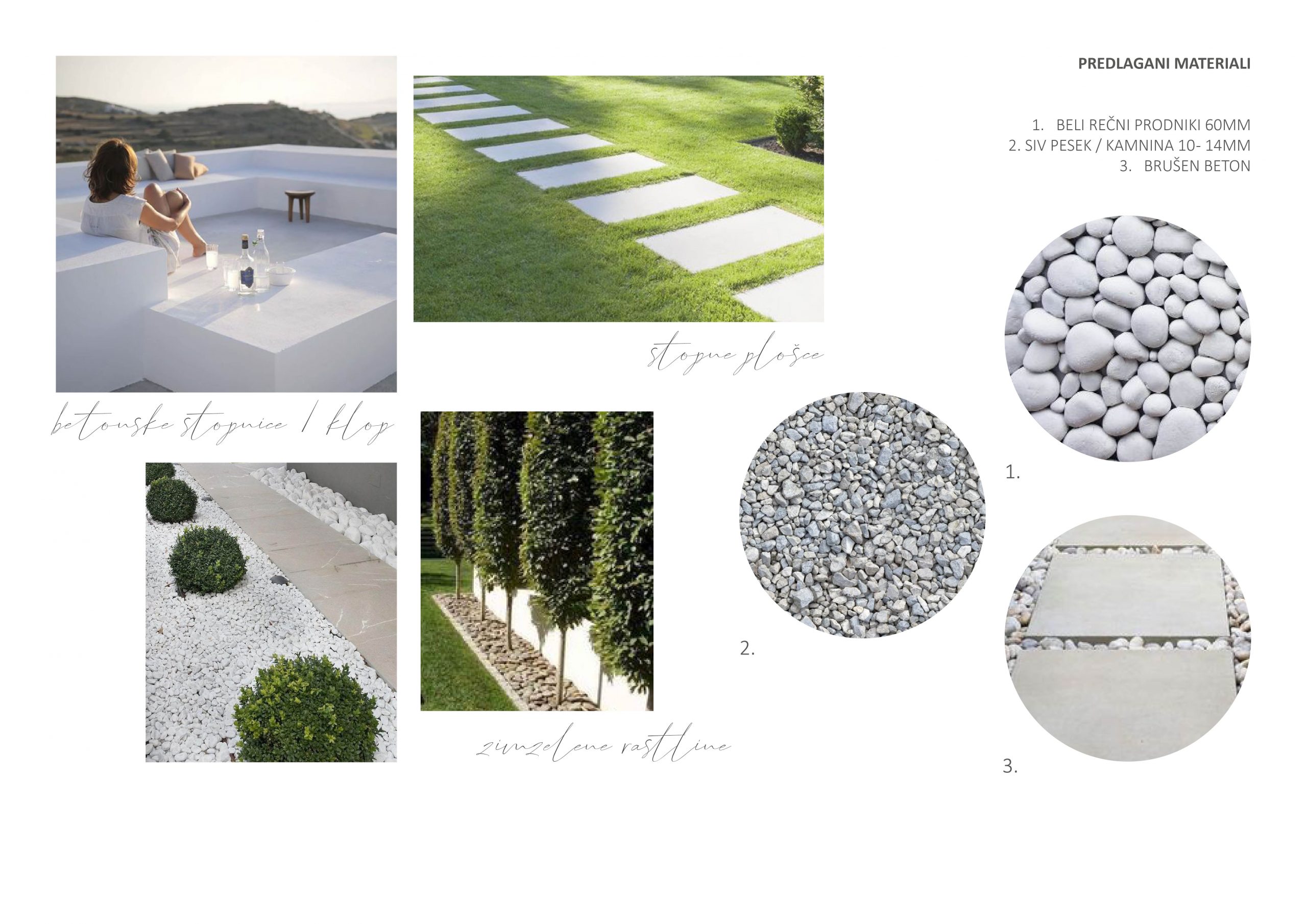 Projekt je zajemal oblikovanje idejne zasnove zunanje ureditve obstoječe enodružinske hiše z vrtom. Stranka je želela sodobno minimalistično ureditev z enostavnim vzdrževanjem in ideje, ki jih bo lahko izvedla sama.